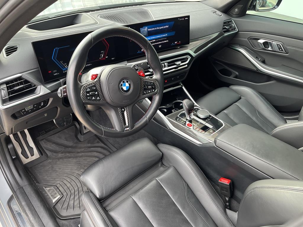 It parks itself with Parking Assistance. Protect this 2023 BMW M3 from unwanted accidents with a cutting edge backup camera system. Never get into a cold vehicle again with the remote start feature on the vehicle. The leather seats in it are a must for buyers looking for comfort, durability, and style. Our dealership has already run the CARFAX report and it is clean. A clean CARFAX is a great asset for resale value in the future. The BMW M3 warns of approaching vehicles with Cross-Traffic Alert. It employs advanced tech for collision avoidance, enhancing safety on the road. Bluetooth technology is built into it, keeping your hands on the steering wheel and your focus on the road. This vehicle is pure luxury with a heated steering wheel. The installed navigation system will keep you on the right path. The vehicle offers Android Auto for seamless smartphone integration. This 2023 BMW M3 offers Apple CarPlay for seamless connectivity.